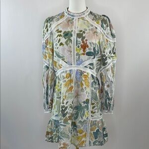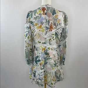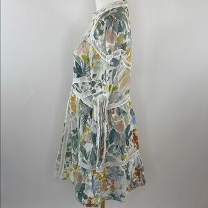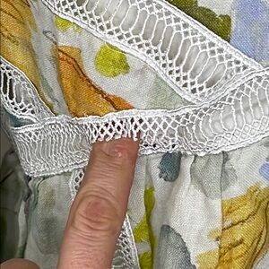 Off White Floral Line (100% Linen; Lining 100% Cotton). Casual Dress. Mock neck. Long Sleeves. Back zipper closure. 35" from shoulder to hemline. Imported.