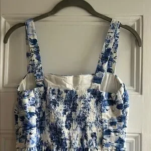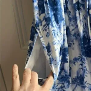 ONLY WORN ONCE! Gorgeous linen dress. Has pockets. Stretchy and comfortable. Great for spring and summer. Elegant floral dress featuring a beautiful blue and white pattern. Perfect for any occasion.