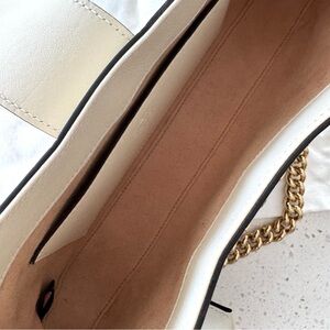 Color description on the website calls the trim white but it’s more of a cream with gold hardware.