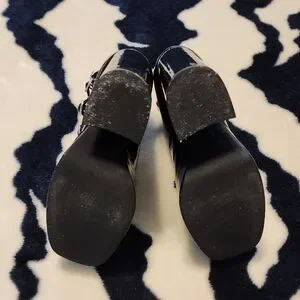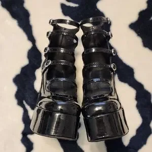 Elevate your style with these chic black patent strappy platform heels. Perfect for a night out or a special occasion. XANDRA-LO