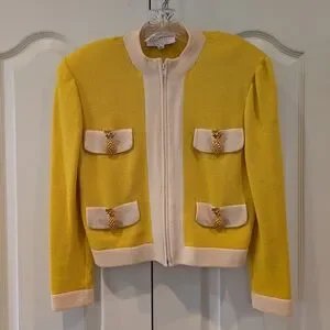 St. John Sportswear By Marie Gray Yellow and Cream Skirt Set- Pinepple Accent