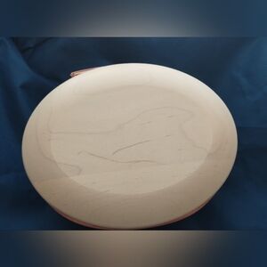 Charming woven basket with a cream lid and pink accents. Perfect for storage of jewelry or small items or decor.
