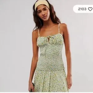 Features: Soft cotton fabrication, subtle scoop neckline, tie at bust, smocked bodice, drop-waist detailing, thin adjustable shoulder straps