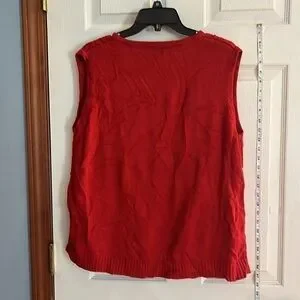 VTG-Allison Daley-L-red sleeveless button down ,V-neck , cable knit design vest