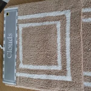 * Enhance your bathroom with this Clouds luxurious tan & white bath mat Set.