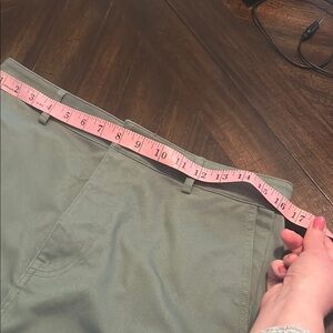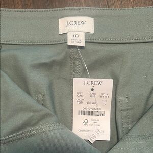 This sage khaki pencil skirt is designed for a polished look, perfect for work or casual outings. Its knee-length cut and smooth, flat front offer a sleek silhouette. The subtle texture of the fabric adds a touch of sophistication to this versatile piece. Never worn.