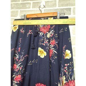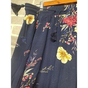 Torrid Womens Navy Floral Waist Elastic Tassel Maxi Skirt