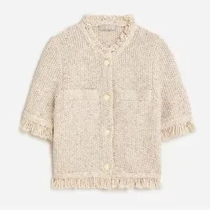 J crew Cropped fringe-trim lady jacket in marled yarn
