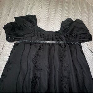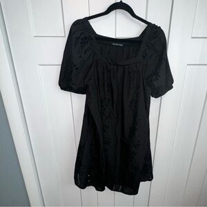 Black Eyelet Puff Sleeve Smocked Dress Large