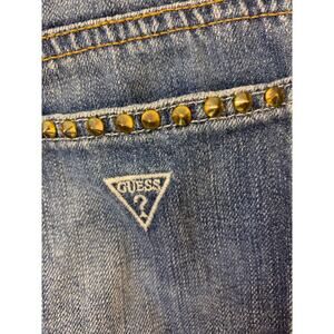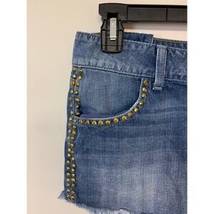 Guess Shorts Gold Studs Frayed Med Wash Denim Cut-Offs Grunge Womens SZ 27