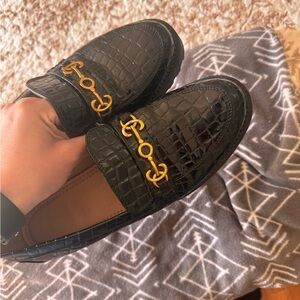Elegant Black Crocodile-Embossed Loafers