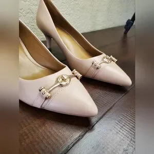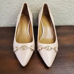 Elevate your style with these elegant Coach pumps. Featuring a chic cream color, these shoes are perfect for any occasion. The pointed toe design adds a sophisticated touch to your ensemble.