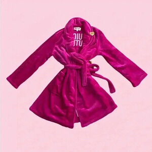 Juicy Couture Barbiecore Pink Silver Sequined Logo Plush Robe Sz S/M