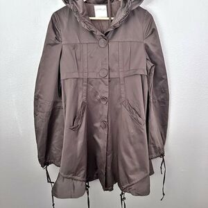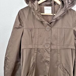 FUMBLIN' FOE x ANTHROPOLOGIE | Brown Pea Trench Coat Hood Hooded | Size Large