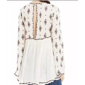 Free People Diamond Embroidered Peasant Long Sleeve Tunic Dress Top Size Medium