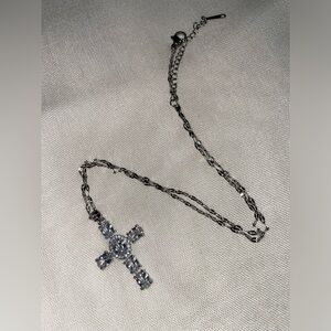 This silver and stone cross pendant necklace adds a touch of sophistication to any outfit. Perfect for any occasion.