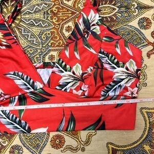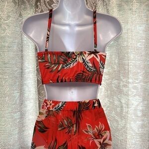 TROPICAL Two Piece Skirt Set Red Size Large Palm Print Lillies Summer