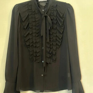 BAILEY / 44 Black Sheer Ruffle Long Sleeve Blouse Womens Small