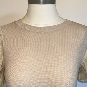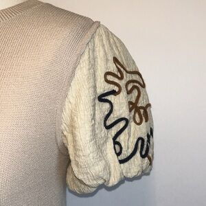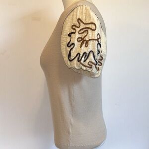 Current air LA Beige Puff Sleeve Top with Embroidered Details Women’s Small