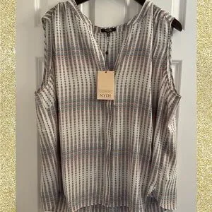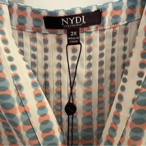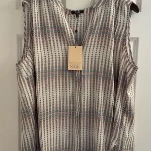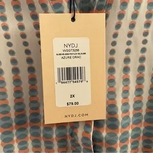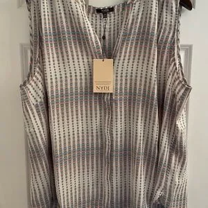 This is a brand new with tags NYDJ Sleeveless Pintuck Blouse. Size 2X. The manufacturer shade is Azure Oracle. Hidden button placket. Pintuck pleats on the back. 100% polyester.