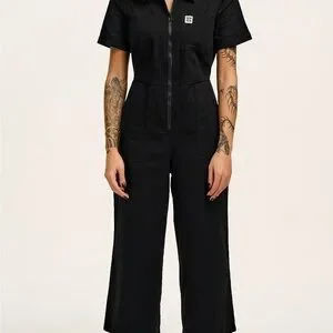 Black short sleeve jumpsuit with front zipper. Brand new with tags, purchased from Lucy & Yak website.