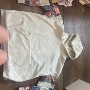 Brand new, excellent condition. Stylish hoodie with unique patchwork sleeves.