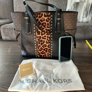 Michael Kors Black and Brown Leopard Print Tote Bag