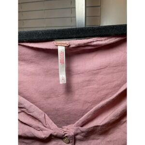 Keywords: Free People, midi dress, sleeveless dress, button front dress, pink dress, casual dress, women's dress, summer dress, boho dress, bohemian dress, linen dress, Free People dress, size L, large dress