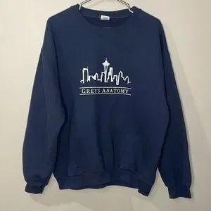 Gildan Grey's Anatomy Graphic Sweatshirt Navy Blue and White Women's Size L