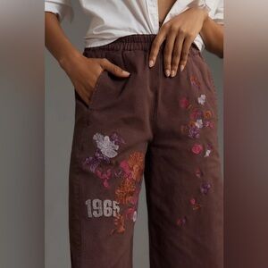 Pilcro The Izzie Relaxed Pull-On Barrel Pants Sz S Embroidered Stretch Ankle