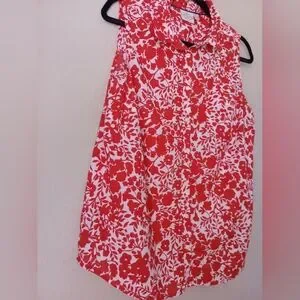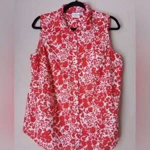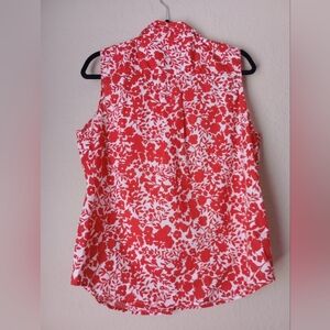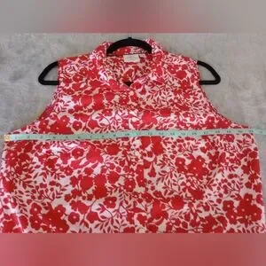 St. John's Bay Red and White Sleeveless Button Down Shirt Top Size XL