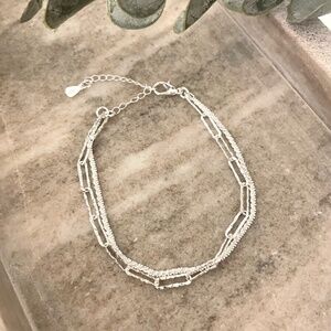 925 Sterling Silver Thin Multi Layer Bracelet Sequin Paperclip Link Bracelet
