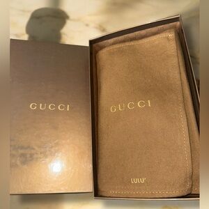 It has a brass key ring and clasp, along with the signature Gucci interlocking G emblem.