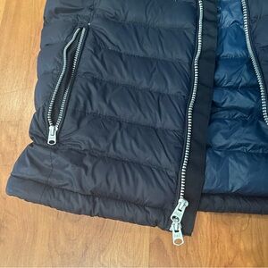 Cute and warm Abercrombie & Fitch puffer vest. 700-fill down, great for layering and staying warm. Double Front zipper with zippered pockets. Dark navy blue to match with any outfit.