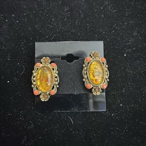 Discover the elegance of this exquisite earrings set featuring floral designs and vibrant gemstones. Perfect for adding a touch of sophistication to any outfit.