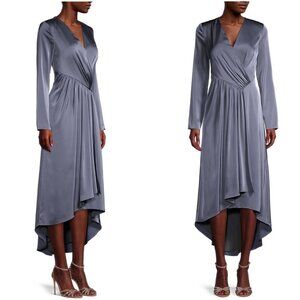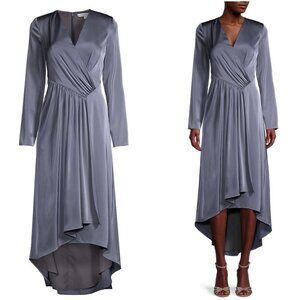 Kay Unger Womens Evening Dress Size 4 Helena Hi-Low Gathered Faux Wrap Gray New