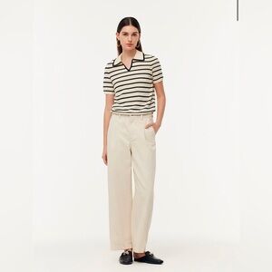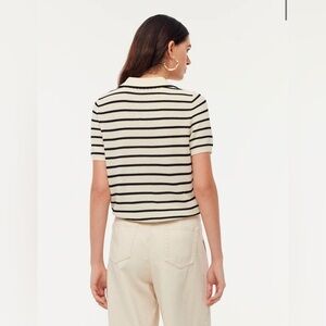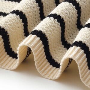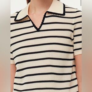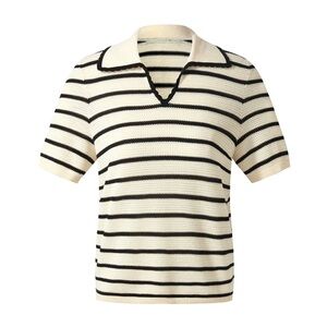 A timeless black-and-white striped knit top that defines a chic silhouette. Crafted from breathable, moisture-wicking Tencel, it's perfect for spring and summer wear. The wave-edged neckline adds a playful twist, breaking away from traditional styles. Highly versatile, it effortlessly adapts to different looks, making it ideal for various office outfits.