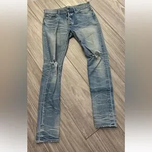 Brand new essentially- cast 2 Juliette wash John Elliott denim jeans from Japan 🇯🇵👖 extremely rare John Elliott 30x33.5”ins with Japanese made selvedge denim in cast 2 fit! Rare rare jeans! 98/2 cotton poly lightly distressed in an antique stacked wash with heavy detailed whispering and honeycombing ! Do not miss out on this one of a kind pair of John Elliott cast 2 Juliette wash distressed denim jeans made In Japan 🇯🇵 with Japanese selvedge stretch denim! Rare! Paid $648