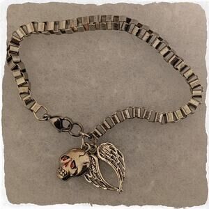 ▪️ Skull & Wings Charms Bracelet on Silver Stainless Steel Lips Chain 8"