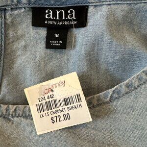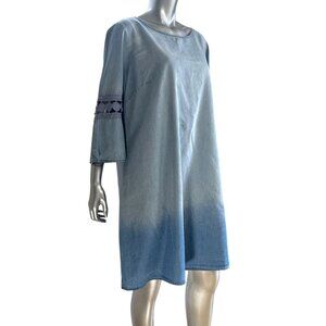 A.N.A Denim Ombre Shift Dress W/ Crochet Bell Sleeves Size 16