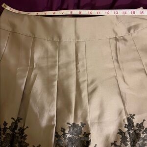 Ann Taylor Size 12 Oat Tan Brown Floral Lace Print Pleated Midi Skirt