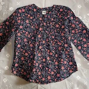 OSHKOSH B'Gosh Girls 4 Top Shirt Pleated Front Navy Blue Pink Floral Print