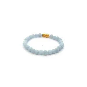 18K Gold Pixiu Piyao Lucky Charm Bracelet Natural Aquamarine Gemstones 6mm