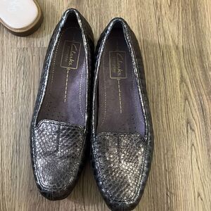 Clarks everyday flat loafers alligator skin brown size 7.6 EUC