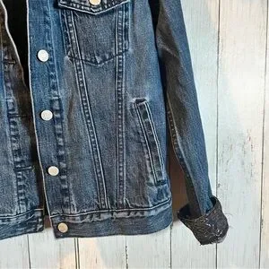 Gap 1969 women’s blue Jean jacket with black floral size small