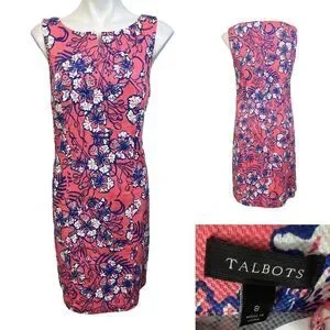 Talbots dress size 8 pink multicolor sleeveless cotton blend knee length office