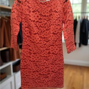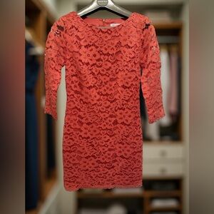 Trina Turk Pre-Owned Size 2 Elegant Coral Lace Long Sleeve Mini Cocktail Dress