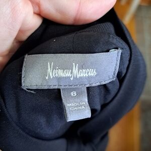 Neiman Marcus women's size 6 black sleeveless dress Tie neck Lined See pictures for lay flat measurements Approximate measurements armpit to armpit 17.5" shoulder to shoulder 14" waist 33" hips 20" shoulder to hem 34.5" Machine washable Excellent condition Minimalist Modest Career Church Office Career Capsule wardrobe piece