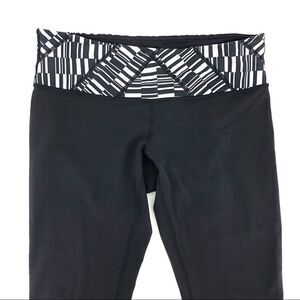 Lululemon black capri leggings white black striped waist band Sz 6