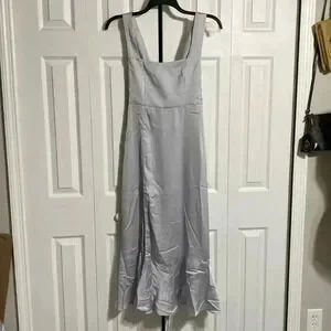 Show Me Your MuMu gray satin Claire Midi Dress CS SMALL XL